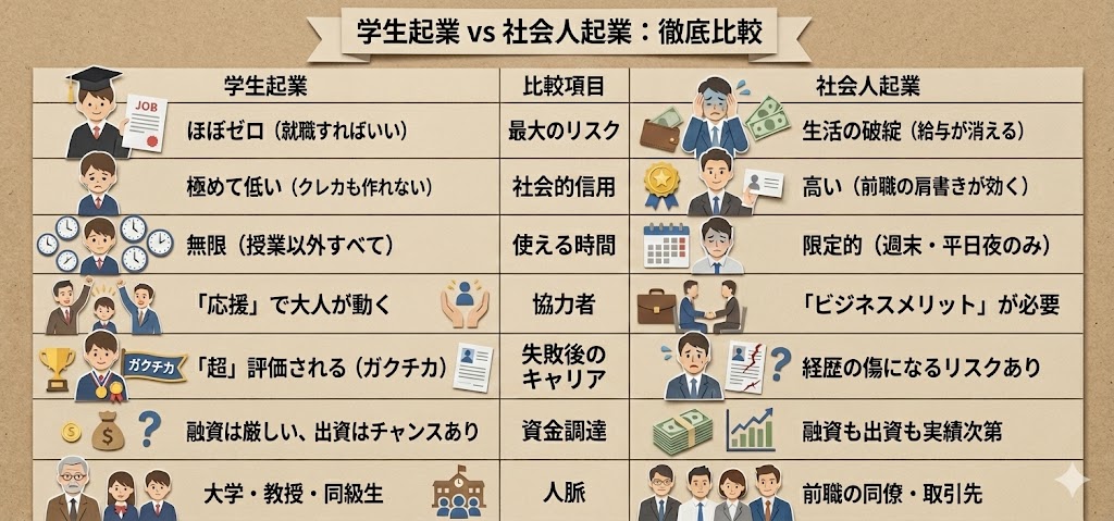 1. ひと目でわかる!「学生起業」vs「社会人起業」徹底比較