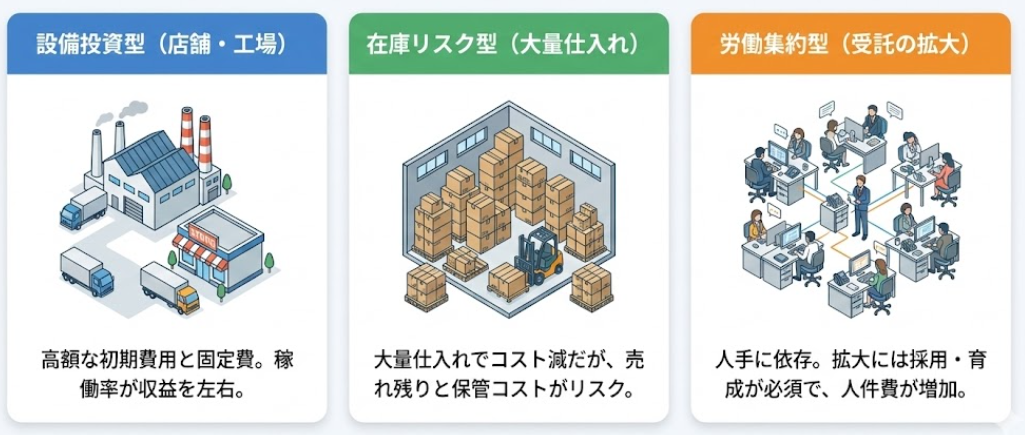 初期費用で数百万〜数千万円が必要です。失敗した時の借金リスクが大きすぎます。
